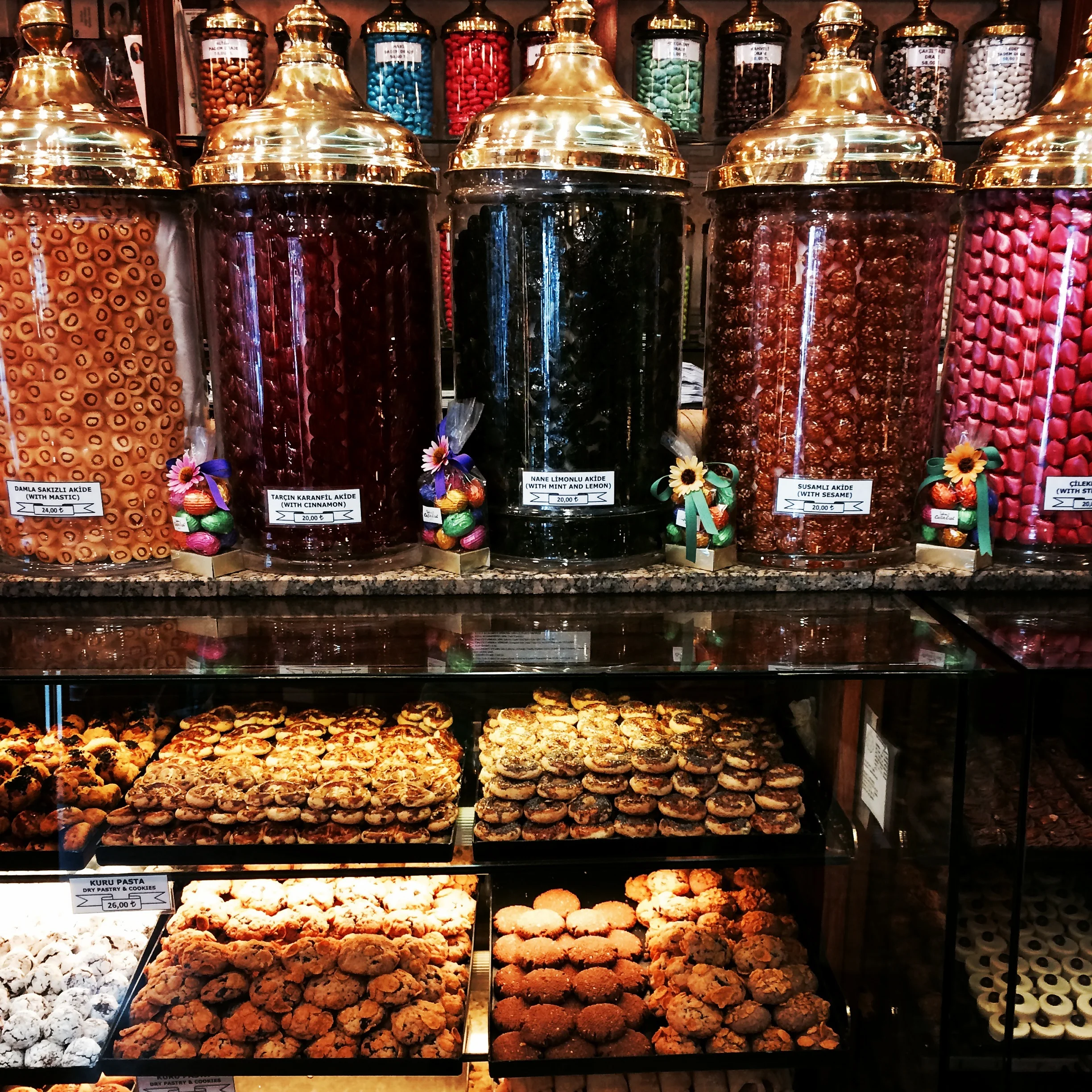 After lunch, we were off to Şerkeci Cafer Erol for a sweet snack. This long-established confectionery (established in 1807, it's almost as old as the United States!) is known for its kaymakli lokum (Turkish delight filled with clotted buffalo cream), which Parla described as "one of the greatest achievements of human civilization." So you can only imagine how crushed I was to be told they were out for the day. But I did stock up on their akide (hard candy), in flavors that were new to me, like mastic and hazelnut, as well as candied baby eggplants, sugared pumpkin, and hazelnut Turkish delight.