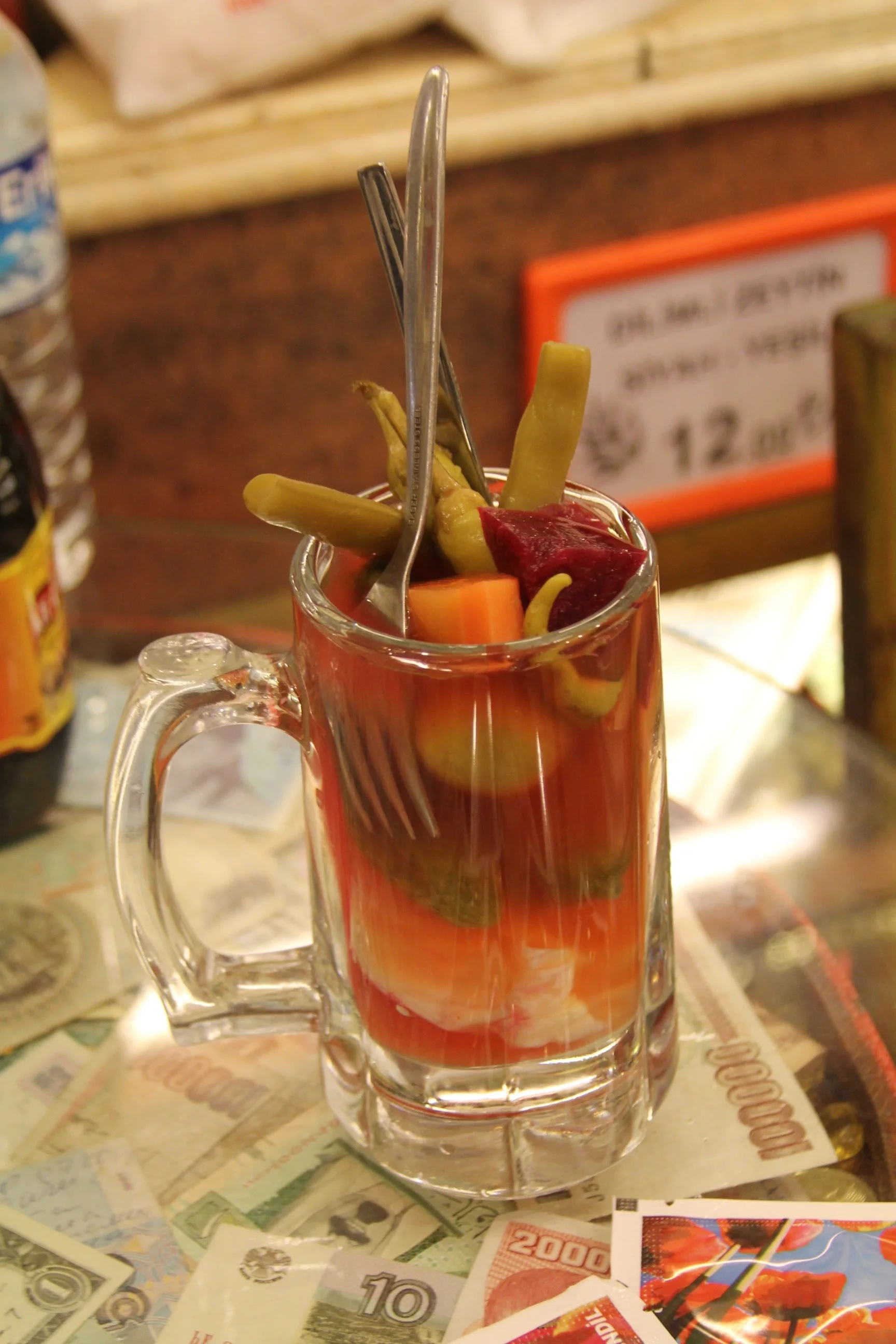 And after that (no rest for the weary!), it was time for some pickles. Down the street, at Özcan Turşuları, there every fresh vegetable you could think of in brine. The item to order here was a glass of turşu suyu, or pickle juice. It was delicious, but nothing like what I'd imagined: a giant beer stein full of pickled green beans, beets, carrots, cabbage, peppers, cucumber, and more, then topped off to the brim with a red-hued pickle juice. I couldn't imagine a better way to spend less than one US dollar.